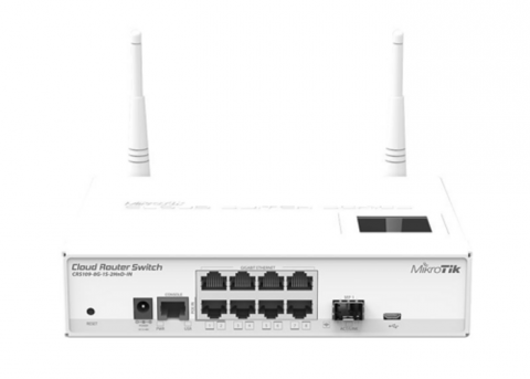 CRS109 has eight Gigabit ports and one SFP port, it also has a built in Wireless Access Point. Our CRS series combines the best features of a fully functional router and a Layer 3 switch, is powered by the familiar RouterOS. All the specific Switch configuration options are available in a special Switch menu, but if you want, ports can be removed from the switch configuration, and used for routing purposes.